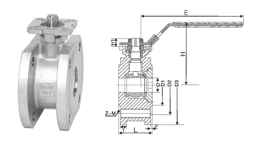 | DN | SIZE | L | D | E | H | H1 | D1 | D2 | D3 | T | F | Z-M | IS05211 |